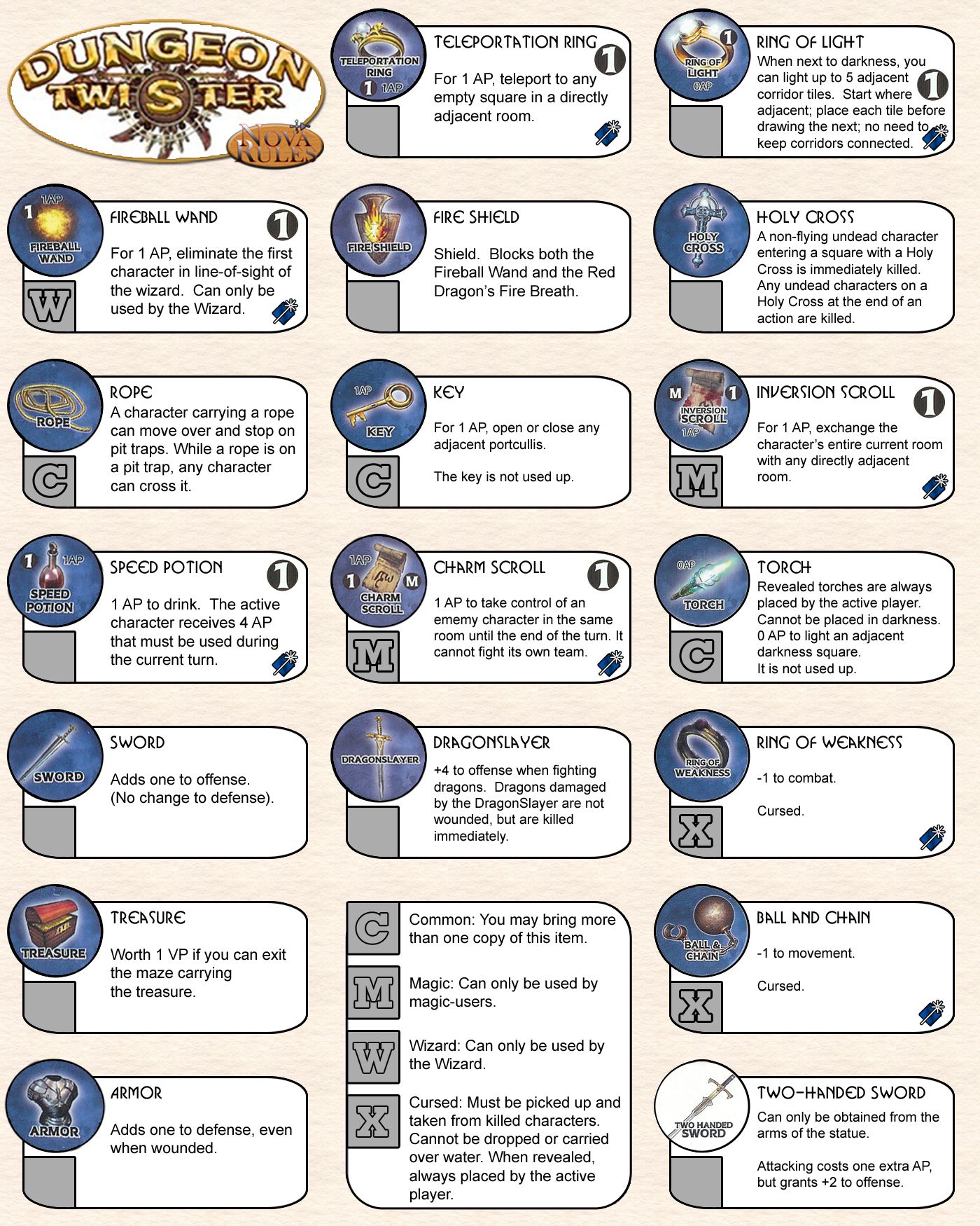 All characters and items from the base game, Paladins & Dragons, and Forces of Darkness.